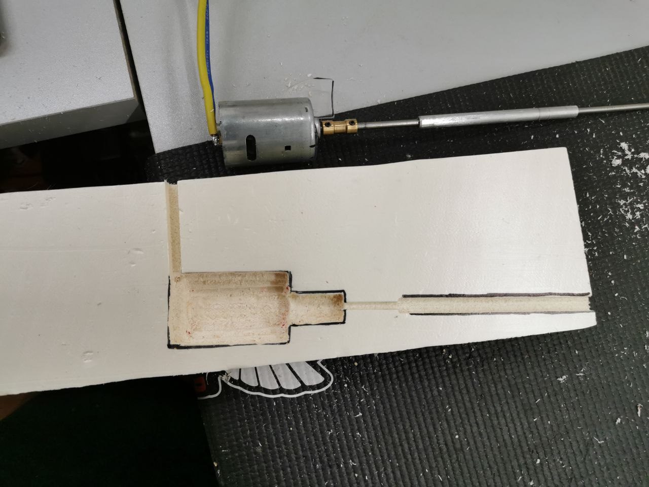 Resto de fotos, detalles del alojamiento de los motores embutidos en el casco. Y la herramienta utilizada para crear el alojamiento de los motores