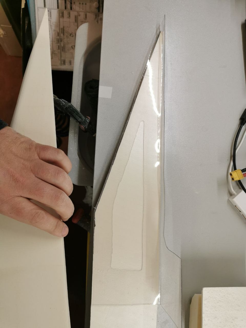 A la izquierda, refuerzos de policarbonato para la proa. Además de reforzar la proa proporcionan una base para los servos de los timones de proa.
