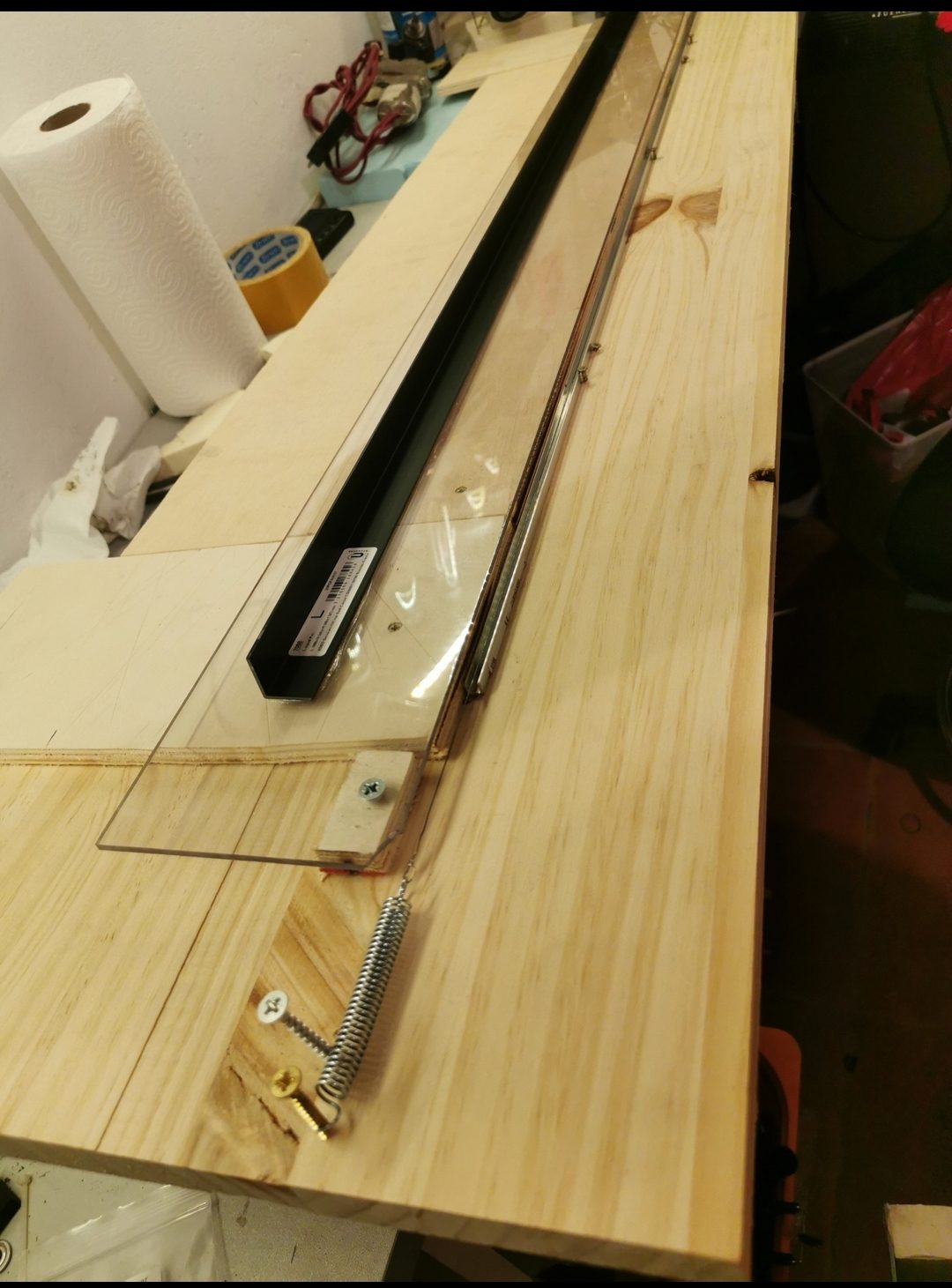Los dos cascos, de la longitud del panel, están hechos con policarbonato de 0.75 mm de espesor en una sola pieza plegada por la mitad con una plegadora fabricada para tal fin con hilo de nicrom.